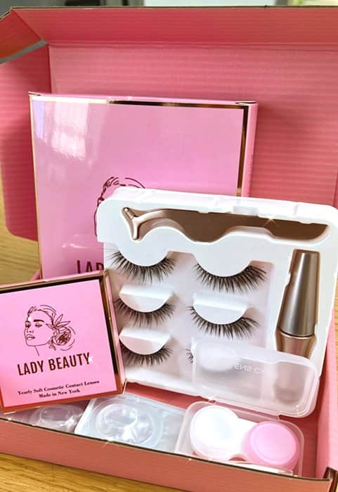 מארז ביוטי-ערכת ריסים מגנטיים ואיילינר מגנטי+עדשות צבע שנתיות מותג- ליידי ביוטי